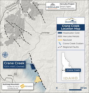Caleb Stroup, Headwater’s President and CEO, states: “Since becoming a strategic Headwater shareholder last year, Centerra has been an engaged and supportive partner. We are very excited to expand that relationship into a fully aligned exploration partnership on the project level at Crane Creek. Centerra’s commitment to a substantial multi-stage earn-in underscores the scale of the opportunity at this project and allows us to properly test what we believe is a large, underexplored epithermal system with high-grade potential at depth as well as near surface bulk-tonnage potential. Centerra brings strong technical expertise and a collaborative approach and we look forward to working with them to unlock the full potential of the project for our shareholders.”